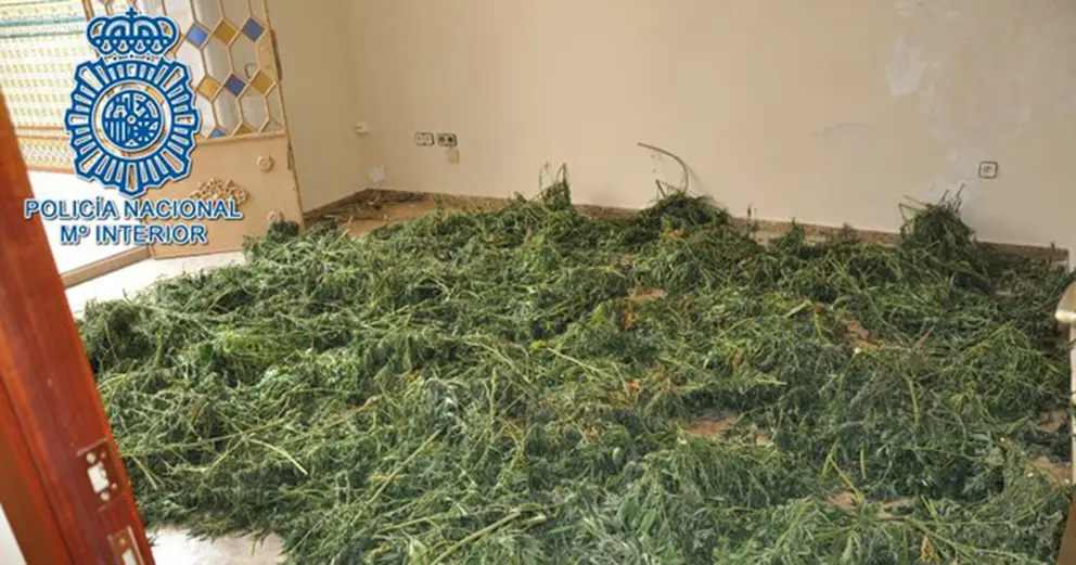 La Policía Nacional ha detenido en una finca de Morón de la Frontera (Sevilla), a dos personas con un cultivo de 60 kilos de marihuana, dos escopetas, una mira telescópica y su munición pertinente. La Autoridad Judicial decretó el inmediato ingreso en prisión para los arrestados.