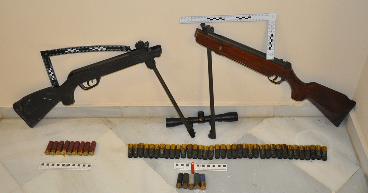 Los detenidos también contaban con dos escopetas de aire comprimido, una mira telescópica y munición