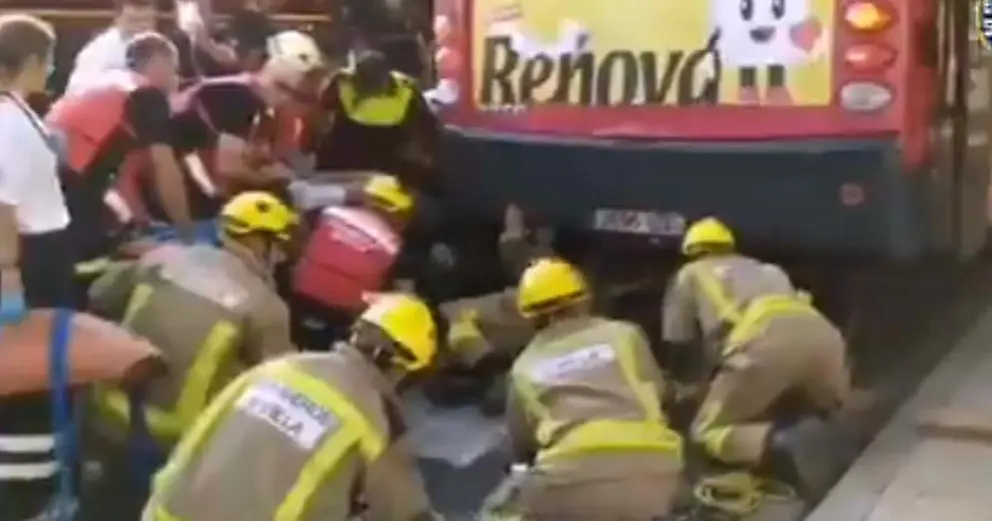 El motorista (29) quedó atrapado debajo del autobús. Fue rescatado por #Bomberos