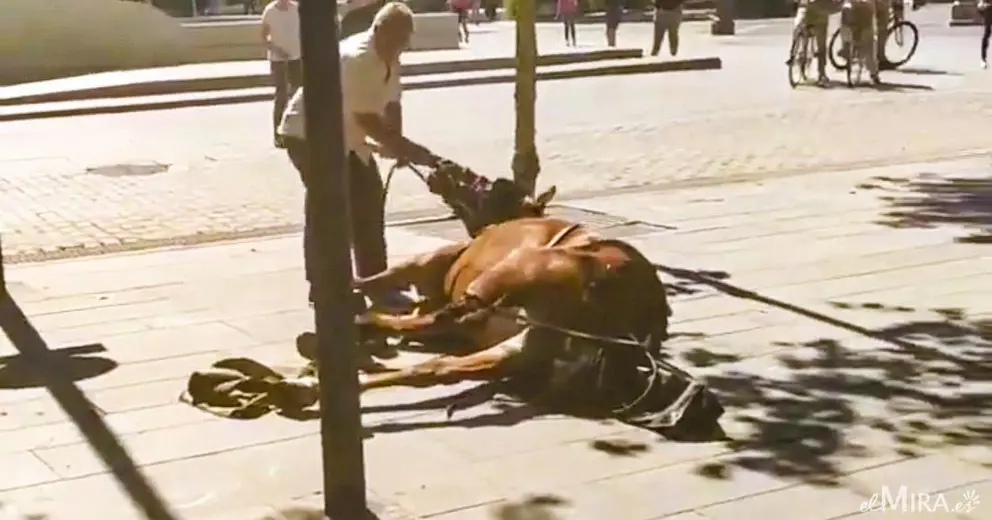 El suceso ha tenido lugar el jueves en Sevilla. El Partido Animalista Contra el Maltrato Animal (Pacma) ha denunciado a través de las redes sociales como un caballo se desplomaba y trataba de levantarse del suelo, cayendo una y otra vez.