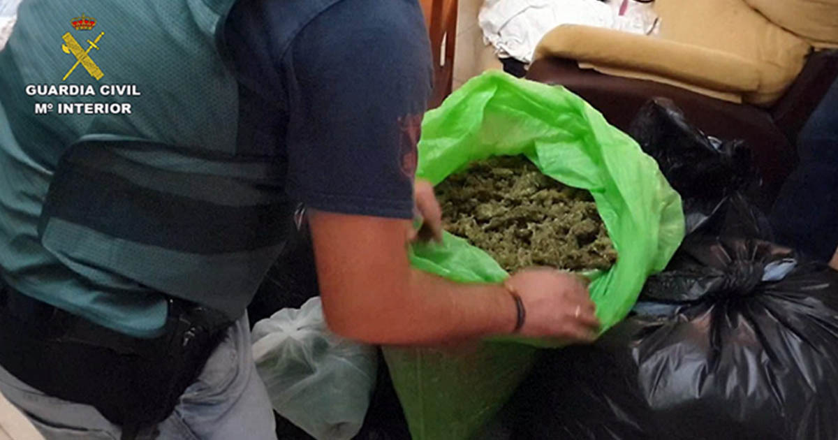 La inspección practicada permitió localizar en su interior varias herramientas agrícolas cuya legítima procedencia no pudo acreditar el propietario del local. Asimismo, la Guardia Civil localizó en una vivienda que se encontraba junto a unas naves de ganado, la cual desprendía un fuerte olor a marihuana, más de 40 kilogramos de cogollos de marihuana, los cuales estaban preparados para su venta en el interior de varias bolsas, una báscula de precisión, varias plantas más de dicha droga en fase de secado, 9.400 € en billetes y monedas fraccionados, gran parte de ellos en billetes de 500 €, un revólver detonador, así como otros efectos relacionados con el cultivo y elaboración de la marihuana.