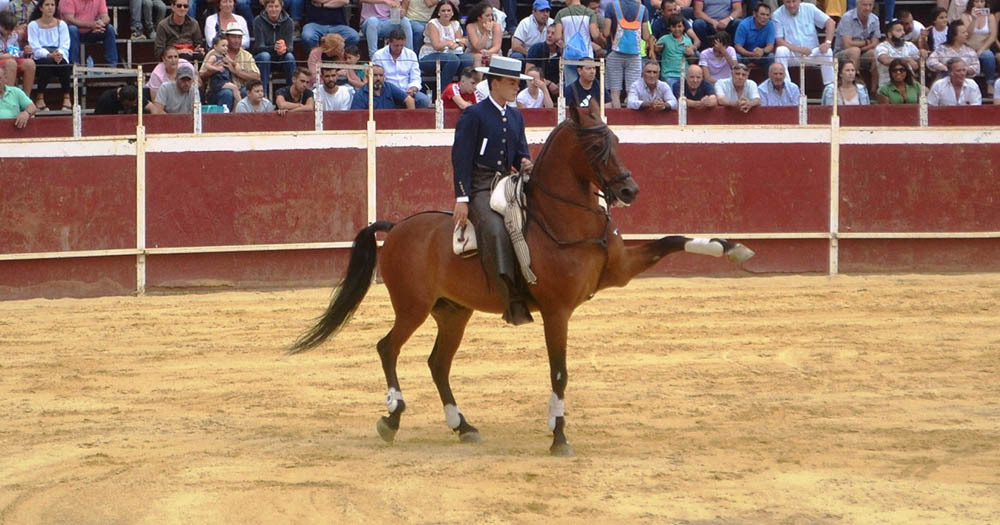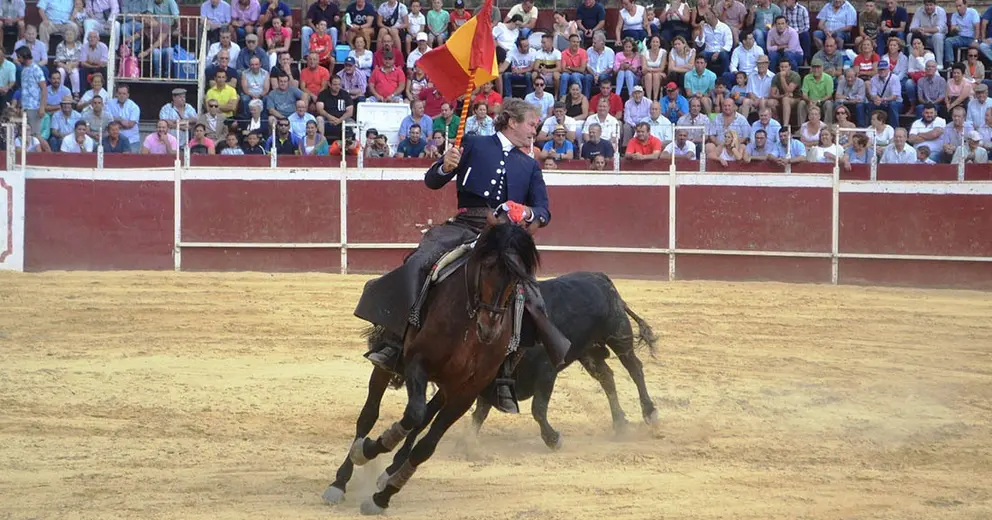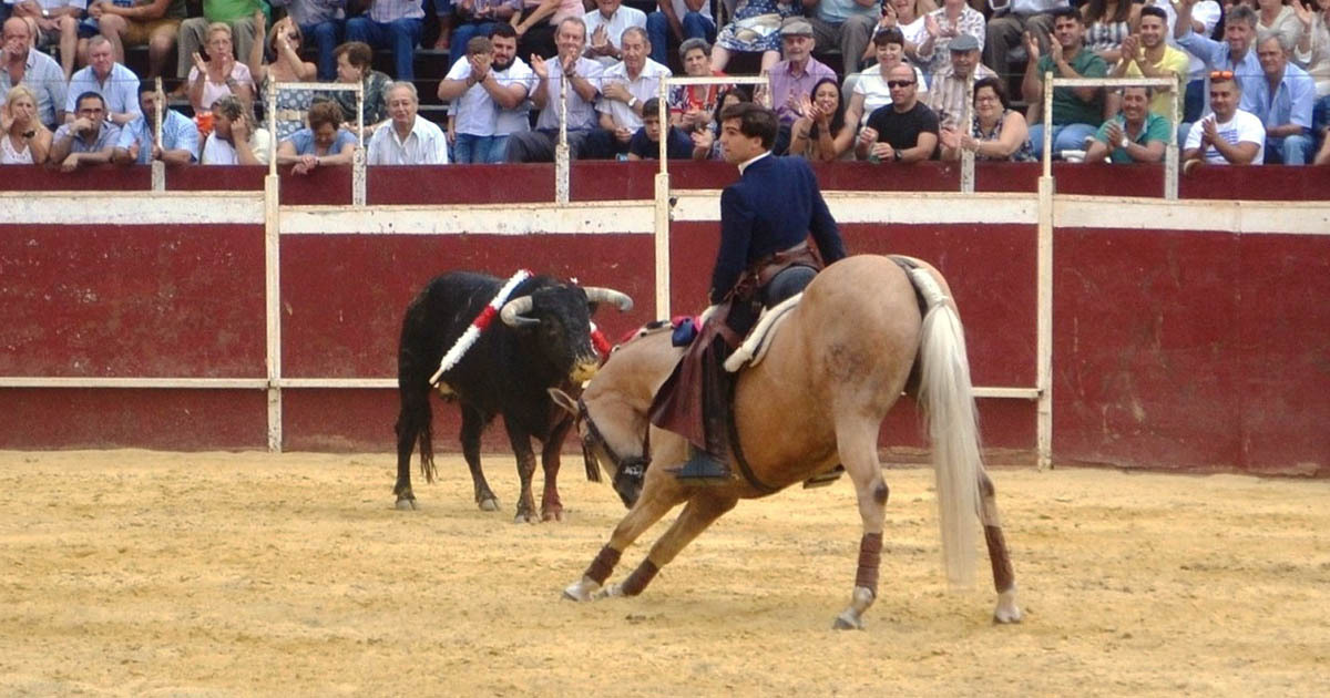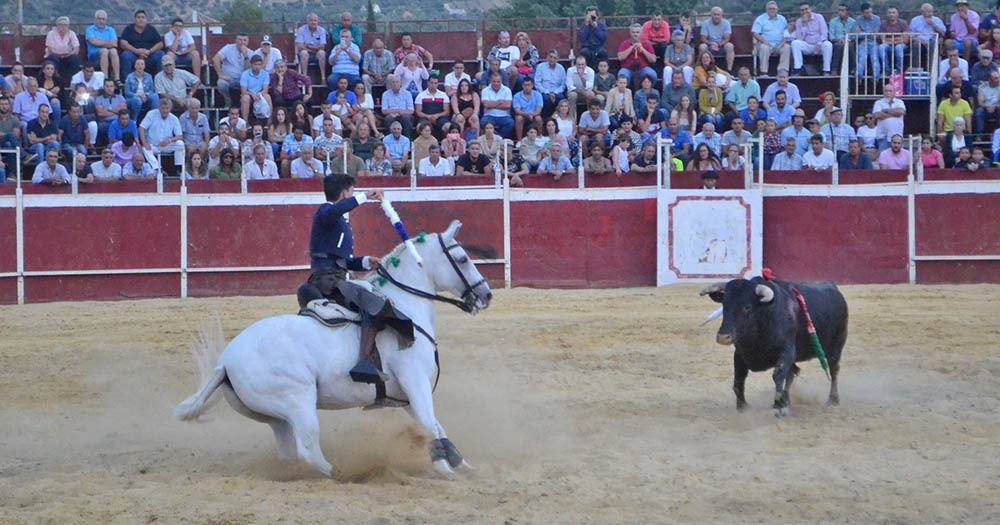 En su segundo, bravo, sacó primero a Ilustre, perla también, para dejar un rejón bien puesto; con el albino Divino, citando de lejos, pone una farpa y luego encela con el anca antes de volver a citar de frente para la segunda, ambas desprendidas; Nado, morcillo, cita en corto para poner una y una, ambas arriba, y salir templando; sobre Happy, de nuevo, deja cuatro cortas (que son demasiadas) adornándose como en la ocasión anterior. Tras doblar el novillo sacó, para animar a la concurrencia, a Cordobés. Las mulillas, en la vuelta de premio al burel, fueron a galope tendido; por favor, ¿no podían poner un poco de solemnidad y hacer el arrastre lento?