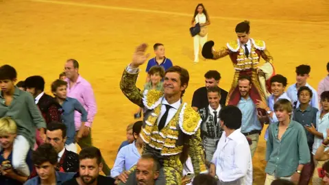 A diestra de nuevo, hay tanda breve y ligada que pone al público en pie y luego otra, con algunos alcances, entremetiendo algún circular. Por el izquierdo, tras algún pequeño apuro saca tanda y aumentan las protestas del animal. Con la derecha hay trasteo y finalmente tanda de manoletinas citando de frente, muy ajustadas. De las dos orejas concedidas quizás sobra la segunda pues la estocada cae en el rincón de Ordóñez y provoca vómito.