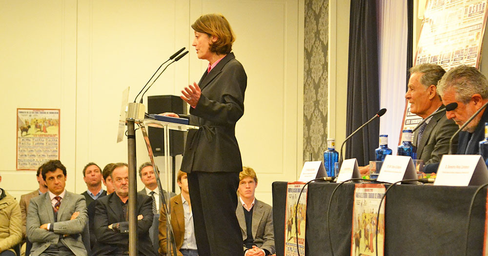 Felipe Díaz Murillo presidente de honor de la asociación española de escuelas taurinas y anterior presidente, durante 31 años, del patronato de la escuela taurina de Madrid desde 1981 hizo la presentación de la homenajeada. Confesó que era un honor hablar de una compañera cuya carrera es paralela a la que él desarrolló. Felicitó a la Asociación Andaluza por la temporada 2017, reflejada en la Memoria. La Junta de Andalucía lleva apoyando a las escuelas desde el principio y él, con experiencia funcionarial en Madrid, fue invitado muchas veces para colaborar con los funcionarios andaluces; de ahí viene su relación con la homenajeada. Ésta siempre se ha movido en segundo plano pero ha puesto mucho cariño y competencia a su trabajo, sin contar las horas dedicadas, apoyando las ideas presentadas por las escuelas.