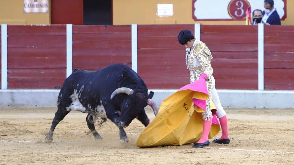 Germán Vidal El Melli (de la escuela El Volapié de Sanlúcar de Barrameda) le aplica de saludo a su novillo, bien armado, unos lances poderosos, avanzando. Juan Rojas y Lucas Benítez rivalizan, para bien, con los rehiletes. Tras iniciar la faena por alto, practica el toreo en redondo, con mando, pero su adversario adolece de falta de fuerzas y pierde las manos; por la izquierda hay gran serie y luego vienen los circulares (ay, Dios), que, sí, ejecuta con quietud pero no dejan de ser una superficialidad más propia de toreros en declive; acaba citando de frente.