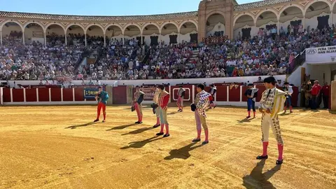 Antonio Santana (de Campo de Gibraltar), de verde y oro, se fue a porta gayola y recibió con un farol, siguiendo con dos largas cambiadas de rodillas, algunas verónicas y media en los medios. Brindó a su padre y ofreció un vibrante inicio de rodillas para seguir con tres tandas, buscando el acople y también la conexión con el público hasta lograr un toreo conjuntado; por el pitón izquierdo bajó la mano y tuvo que retener a uno que quería irse; a diestra de nuevo, se arrimó pero sin mucho reposo, terminando por molinetes de rodillas. Estocada desprendida que asoma por abajo, con derrame. Dos orejas y salió a hombros.
