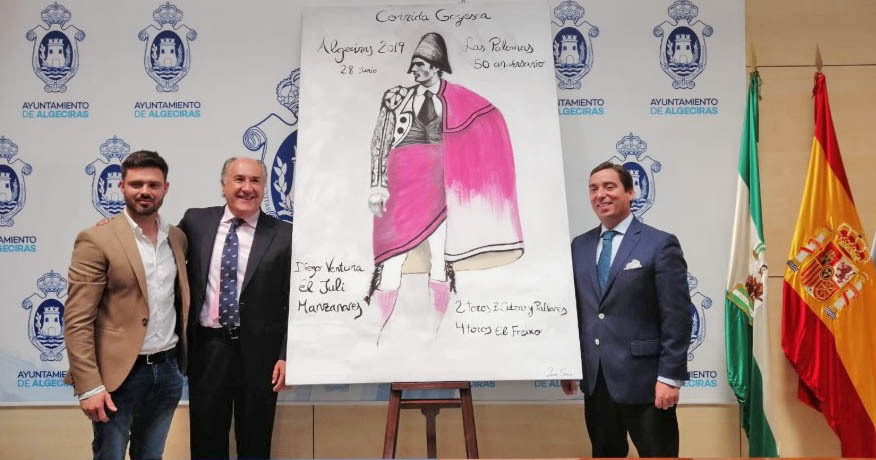 Landaluce destacó la apuesta por esta corrida goyesca, asegurando que “nuestra plaza de toros es historia viva de Algeciras y, por eso, este aniversario debe contemplar también momentos históricos que engalanen aún más esta efeméride”. Por su parte, Garzón felicitó al pintor y agradeció al alcalde y al Ayuntamiento la confianza para desarrollar la programación del quincuagésimo aniversario. Finalmente, Sierra declaró que para él es un orgullo enorme decorar la plaza de toros y hacer este cartel goyesco en la segunda goyesca que hay en Las Palomas.