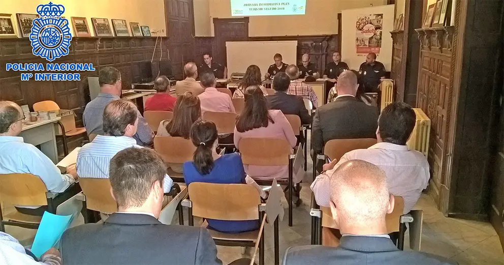 La Policía Nacional realizó el pasado viernes 06 de julio una Jornada de Formación y Coordinación en el salón de actos de la Comisaría de Jerez enmarcada dentro del Plan Turismo Seguro 2018. El objetivo de esta jornada es mantener y mejorar los cauces de comunicación entre el sector turístico y las fuerzas de seguridad así como abordar de forma específica los principales delitos y problemáticas que afectan al sector de la ciudad.