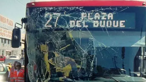 Nueve personas heridas tras un choque entre un autobús y una grúa