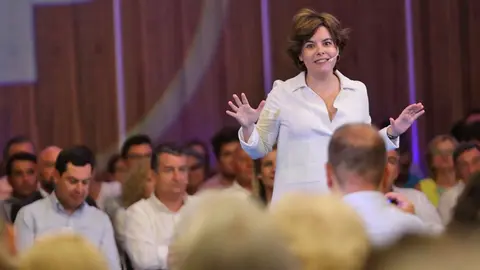 Soraya Sáenz de Santamaría recibe el cariño de 400 afiliados en Cádiz