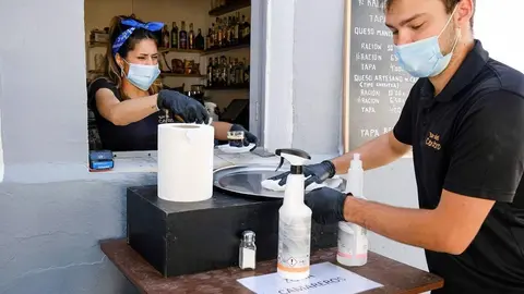 La mujer ha sido apuñalada en una pierna y los facultativos sanitarios la atienden en la barriada de Villarrubia en una ambulancia