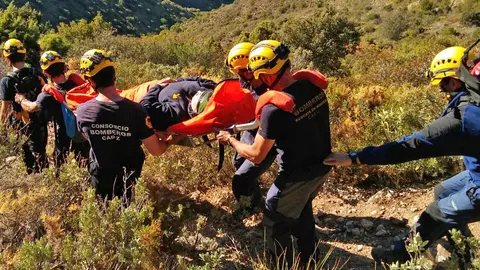 Los Bomberos localizan en plena noche a una pareja atrapada rodeados de bloques y vegetación aislados y sin cobertura
