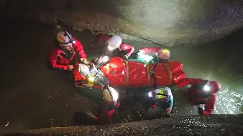 Bomberos del Grupo de Rescate de Montaña de Ubrique la localizaron y ayudaron a bajar