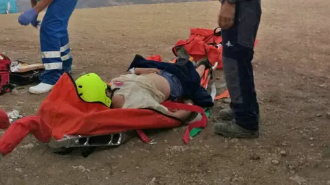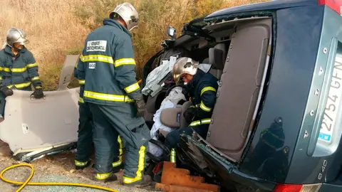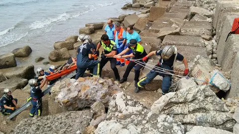 El joven deportista fue trasladado por los bomberos de Ubrique tras sufrir un fuerte politraumatismo