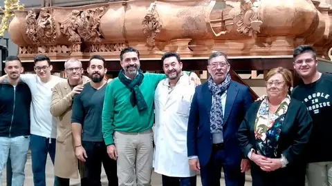 El paso del Nazareno de Cádiz: Gaditano y único El MIRA 10/1/20 Manuel y Federico Caballero González, responsables del taller, junto a su equipo de carpinteros, mostraron las novedades que presenta el tallado del canasto