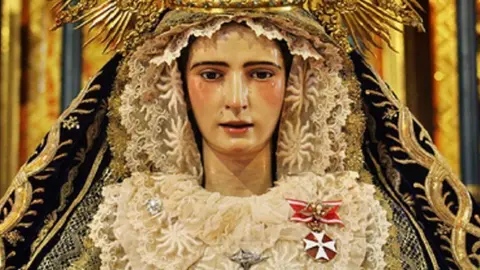 Así concluirá el 75 aniversario de la Virgen de los Dolores del Nazareno El MIRA 5/12/19 La Señora viste a la usanza hebrea, dándole sencillez, sobriedad y humanidad para realzar la obra de su escultor, Juan Luís Vasallo Parodi