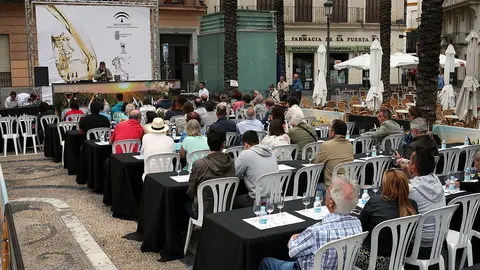 Catas al aire libre en la plaza del Arenal El MIRA 5/6/18 La Bodeguita del Ayuntamiento ha sido sede de una cata de vinos de Tokaj para profesionales