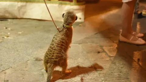 Interponen denuncia en Comisaría tras ver a suricatos amarrados, fotos con flash a halcones y búhos, una pitón en un alcorque de un árbol...