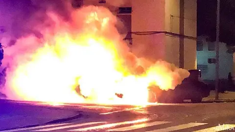 En llamas dos coches del mismo dueño en plena noche en Jerez El MIRA 21/11/18 El fuego, con llamas de gran altura, ha provocado una abundante y densa humareda, visible desde varios puntos de la ciudad