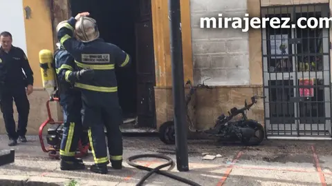 Queman una motocicleta en la calle Ancha afectando a una vivienda El MIRA 13/5/17 El fuego ha dañado el portal y el balcón de la casa, así como la fachada de un local comercial