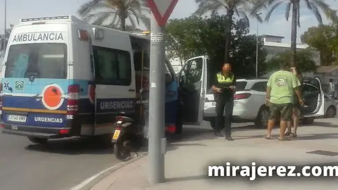 Un joven sufre un accidente en la rotonda de la barriada La Granja El MIRA 17/5/17 El herido ha sufrido una luxación del hombro y diversas contusiones