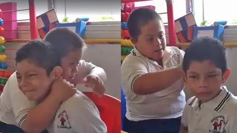 Un niño con Síndrome de Down abraza a su compañero con autismo que lloraba