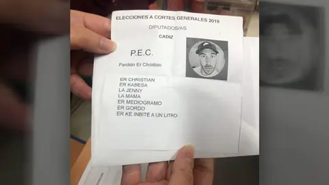 Er Christian se lleva un voto en Andalucía El MIRA 10/11/19 Concretamente ha recibido un voto en una mesa electoral de la localidad gaditana de San Fernando