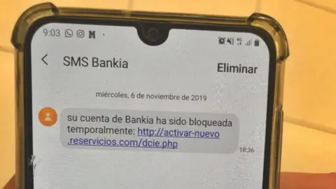 Un SMS simula ser de Bankia para hacerse con los datos personales de los usuarios El MIRA 14/11/19 El mensaje indica que la cuenta "ha sido bloqueada temporalmente" y redirige a una web falsa