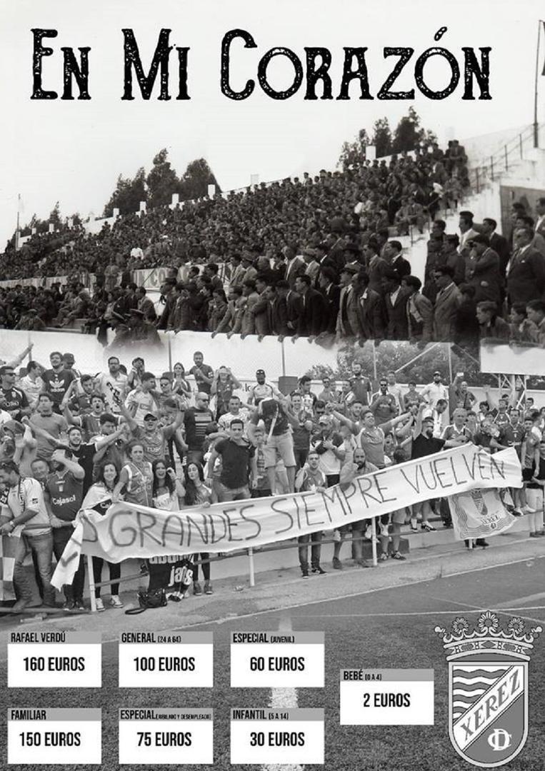Confirmado de manera oficiosa que el Xerez CD jugará durante toda la temporada en Jerez, arranca la campaña de abonados bajo el lema En mi Corazón. Los precios de los abonos son los siguientes: