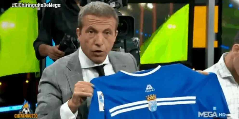 Cristobal Soria saca una camiseta del Xerez CD en pleno programa del 'chiringuito'