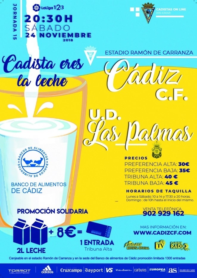 El club cadista, en estrecha colaboración con el Banco de Alimentos de Cádiz, entidad con la que tiene convenio y con la que ha realizado numerosas acciones conjuntas en las últimas fechas, pone a disposición de esta 1.300 entradas de Tribuna Alta.