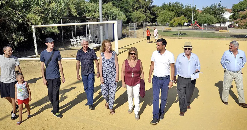 El teniente de alcaldesa de Urbanismo, Medio Ambiente e Infraestructuras, José Antonio Díaz, junto al delegado de Deportes y Medio Rural, Jesús Alba, han visitado el terreno de juego junto a la directiva del citado club, encabezada por su presidente, Alfonso Gallego.