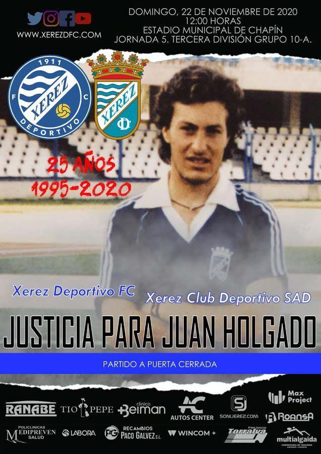 El partido, como se puede ver en el cartel que ha lanzado el Xerez Deportivo FC, está dedicado a la figura de Juan Holgado, puesto que el día del partido se cumplen 25 años del asesinato del que fuese jugador del Xerez CD.