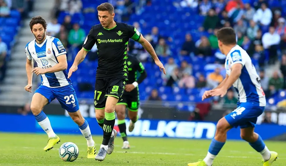 Llegaba el equipo verdiblanco a Cornellà-El Prat con el objetivo de conseguir la cuarta victoria consecutiva y seguir escalando en la tabla. Arrancaba bien el encuentro para el Betis, ya que solo tardaba tres minutos en adelantarse en el marcador. Robo en medio campo y el balón llegaba a la izquierda donde Álex Moreno metía un buen centro. Dentro del área, Borja Iglesias, que volvía a la titularidad, se adelantaba a dos centrales y cabeceaba dentro. Trataba de recomponerse el equipo local tras el gol, buscando mandar balones arriba.