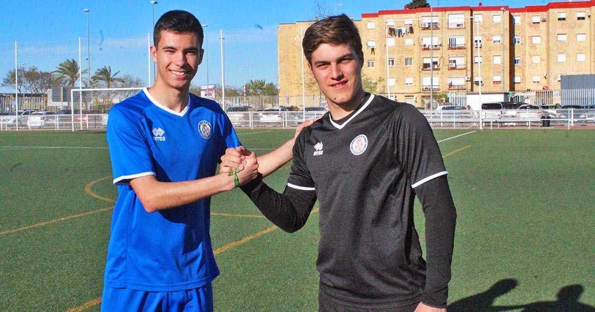 Juanan, a la izquierda, saluda a su compañero César | Foto: xerezdeportivofc.com