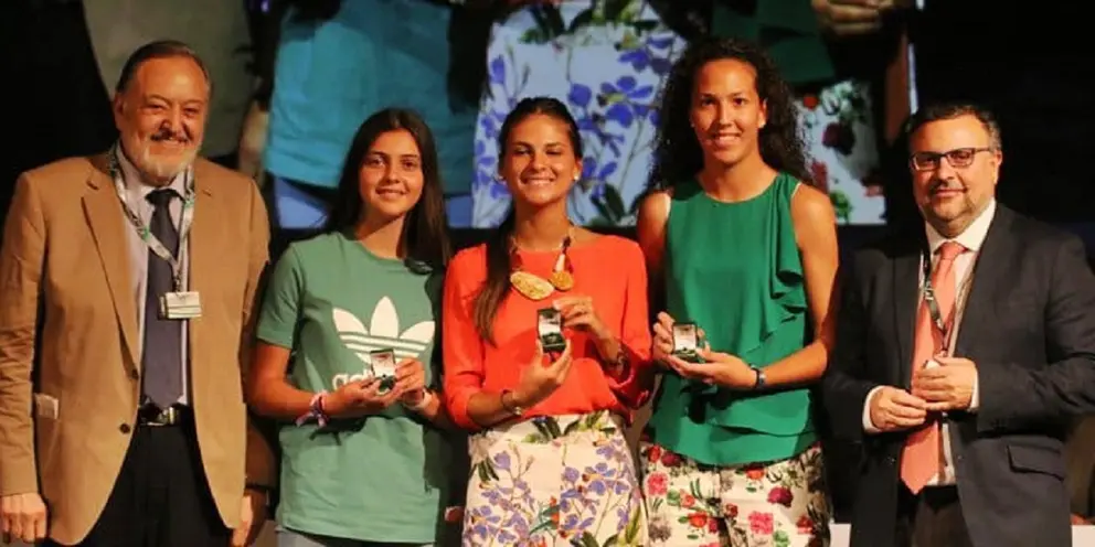 Por otra parte, la futbolista jerezana Teresa Mérida recibía un escudo de oro por lograr ser campeona de Europa con la selección española sub17. La propia jugadora del Jerez Industrial recogía orgullosa el galardón.