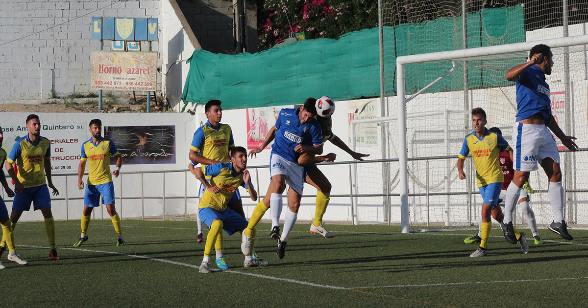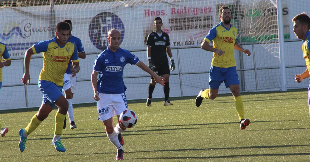 El Conil, que no se aproximó con peligro sobre el área azulina hasta el minuto 20, conseguiría abrir la lata a cinco minutos del descanso por mediación del veterano Javi Navaro que recogía un balón suelto en la frontal y batía a Camacho.