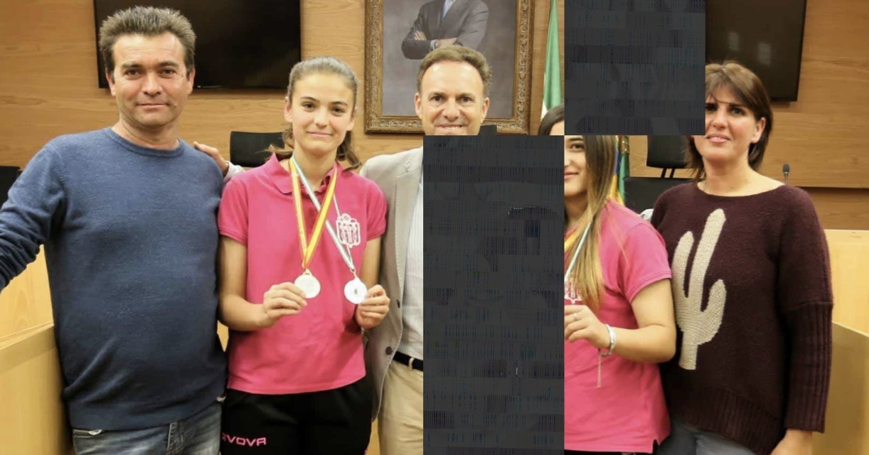 El alcalde David de la Encina ha recibido a Andrea Velasco López y Aymara Gallo Mena, campeonas de España de fútbol sub-15 con la selección andaluza y jugadoras del C.D. San Marcos Femenino.