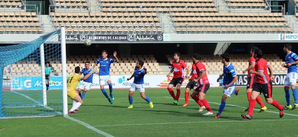 Los de Aguilocho disfrutaban de varias ocasiones claras pero ninguna terminaba en el fondo de la portería de Ferriol. La entrada de Biri hacía que gran parte de las jugadas de peligro azulinas llegasen por banda derecha aprovechando la velocidad del futbolista xerecista.