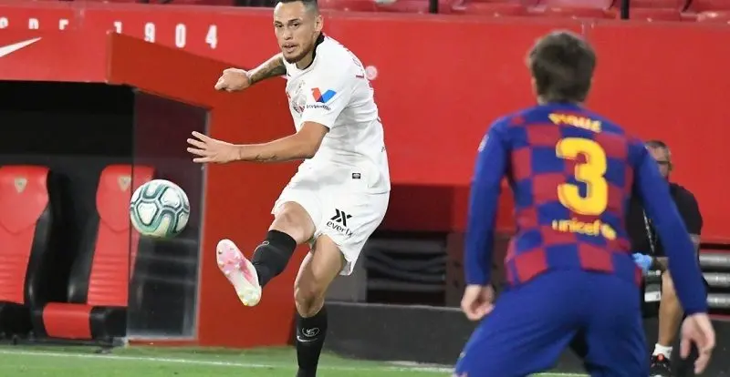 Bastante más lejos volvió a probar el albiceleste tras una inexistente falta de Diego Carlos sobre Braithwaite, pero esta vez la ventaja fue de Vaclík, que se hizo con ella en dos tiempos. El balón era de los visitantes, mientras el Sevilla intentaba armar el juego desde la frontal de su área, justo donde solían morir las llegadas catalanas gracias a la buena disposición tanto de los centrales como de Jordán. Óliver y Munir eran los mayores protagonistas a la hora de dinamizar el ataque sevillista. Sin embargo, la única clara de todo el primer tiempo había nacido de las botas de Koundé, con un balón rechazado que el francés cruzó demasiado a la derecha de Ter Stegen.