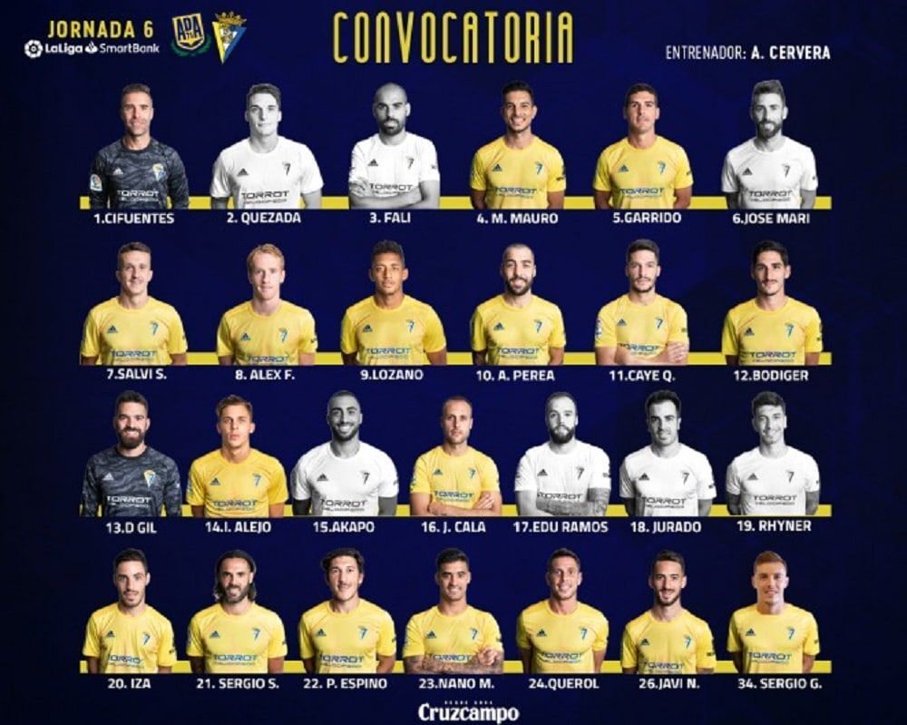 Una vez finalizado el entrenamiento de ayer lunes por la tarde, el entrenador Álvaro Cervera daba a conocer la convocatoria para el encuentro ante el Alcorcón de este martes, día 17 de septiembre, a las 21:00 horas en Santo Domingo. La expedición ha partido a primera hora con los siguientes 19 futbolistas convocados: