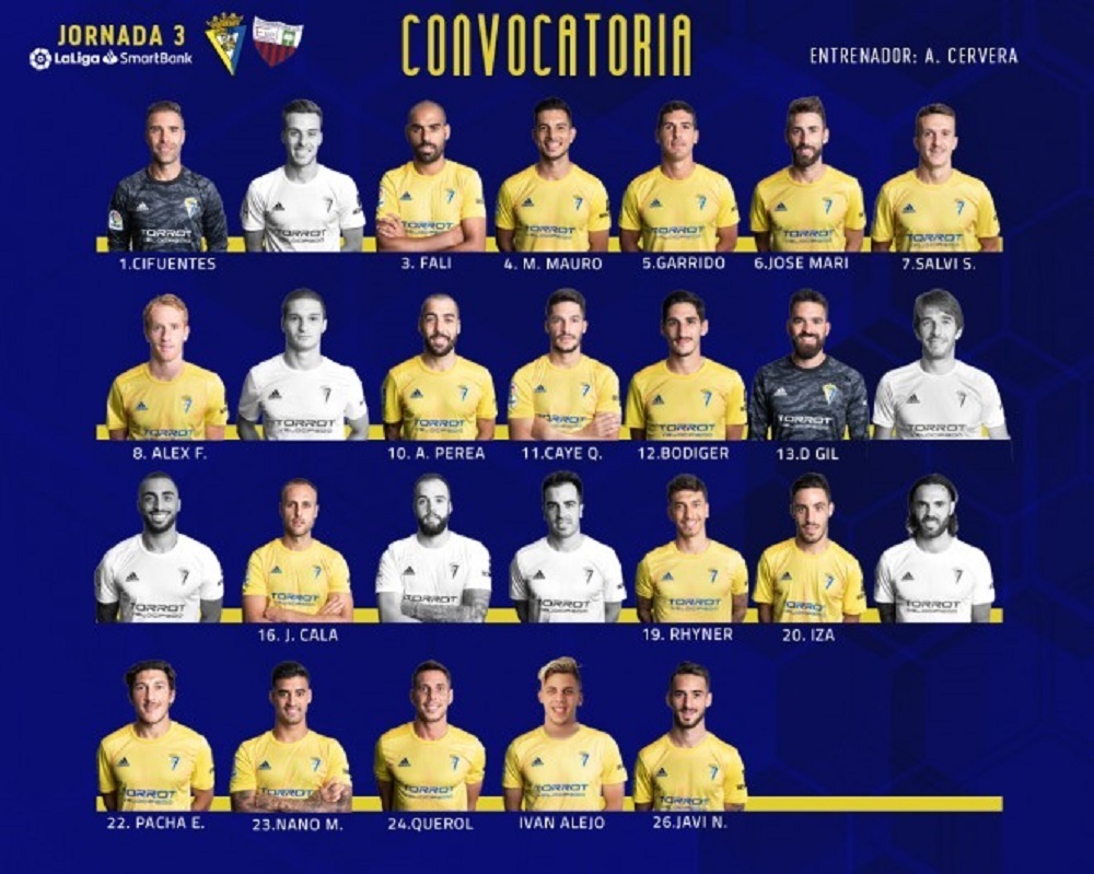 En la jornada de ayer se conocían los futbolistas convocados para el referido partido. El entrenador Álvaro Cervera daba a conocer la siguiente convocatoria de 19 jugadores tras la última sesión de trabajo en la ciudad deportiva: