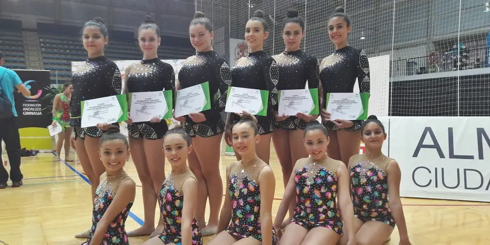 El pasado 21 y 22 de abril se disputó en Almería la 1ª fase de Campeonato de Andalucía de Gimnasia Rítmica de promesas donde participaron las gimnastas jerezanas. Hasta allí se desplazaron todas las categorías del club jerezano; el senior formado por María Balao, Cristina Ortiz, Sandra Román, Lucia e Irene Lobo y Mamen Durán; el infantil formado por Daniela Ortiz, Cristina Durán, Alejandra García, Elena Gallardo y Patricia Vázquez; y el alevín formado por Sara Prado, Irene Trujillo, Lola Requejo, Paloma Miranda y Noelia Arana.