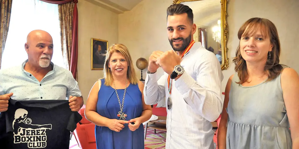 Mamen Sánchez y Laura Álvarez han querido felicitar a este luchador jerezano que se proclamó Subcampeón el pasado 9 de julio en Murcia. Asimismo, la alcaldesa ha manifestado sentirse “muy orgullosa de su logro” y ha hecho hincapié en que una vez más “un deportista jerezano se sube al podio de los ganadores y, por la tanto, la puesta en marcha por este gobierno de la I Gala del Deporte, será una manera de reconocer el esfuerzo de los deportistas jerezanos que tanta alegría nos están dando y que tan buen ejemplo son para los jóvenes”.