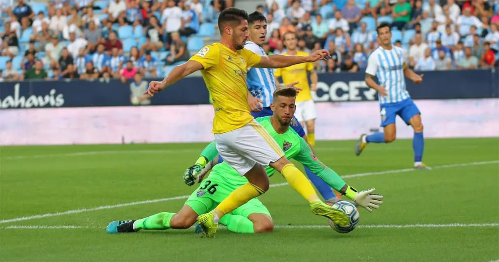 En un encuentro sin ocasiones claras la luz iba a llegar en el minuto 42. Carrerón de Salvi por banda derecha, el sanluqueño gana línea de fondo y centra para un primer remate de Choco Lozano y uno segundo de Nano Mesa en línea de gol. 0-1 pero con incógnita. Hasta tres minutos tardó el VAR en dar el gol legal para la alegría del medio millar de cadistas que estaban en La Rosaleda. Con suspense y duda de quién era el autor, el tanto subió sumado para el hondureño.