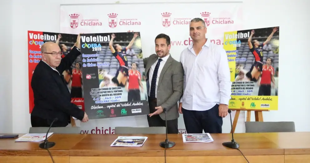 El delegado municipal de Deportes, José Manuel Vera; el presidente de la Federación Andaluza de Voleibol, Ramón Velázquez; y el representante del Club Voleibol Chiclana, Juan José García, han presentado el Campeonato de Andalucía de Clubes Juveniles (CADEBA) de voleibol, que se celebrará en Chiclana esta semana, así como en las categorías infantil, que se celebra la próxima semana (11 al 14 de abril), y cadete, que se llevará a cabo del 9 al 12 de mayo. Concretamente, la competición juvenil dará comienzo en la jornada de mañana jueves y se desarrollará hasta el domingo en las instalaciones de los pabellones polideportivos Ciudad de Chiclana, Costa Sancti Petri, Huerta del Rosario y El Fontanal. “Esta competición hace que nuestra ciudad de convierta en la capital del voleibol andaluz durante unos días, puesto que acogerá a equipos de toda la región durante los meses de abril y mayo”, ha destacado el edil, quien ha resaltado que “esto es fruto de una serie de reuniones entre el Ayuntamiento y la Federación Andaluza de voleibol”.