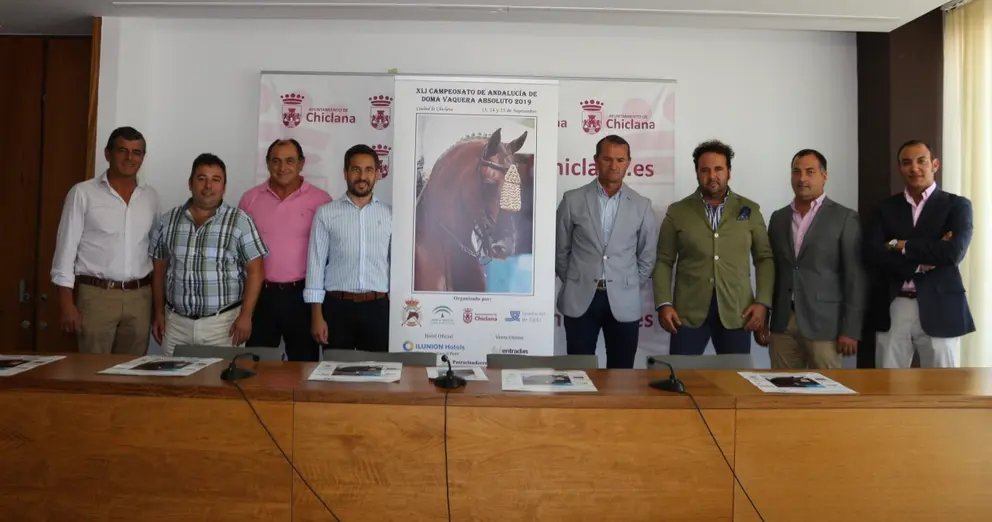 El delegado municipal de Deportes, José Manuel Vera, y el responsable de Royal Center Hípica, Chema Martínez, han presentado el XLI Campeonato de Andalucía de Doma Vaquera, que se celebrará en las instalaciones de Novo Sancti Petri del 13 al 15 de septiembre, esperándose que la participación ronde el medio centenar de jinetes.