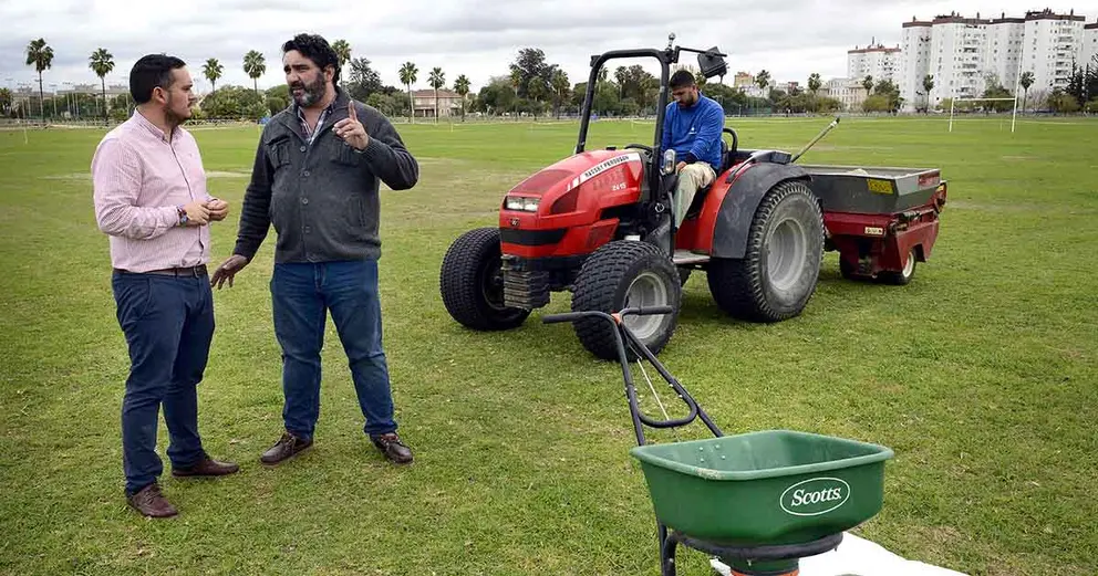 Concretamente se ha iniciado la resiembra en el campo más próximo al edificio ‘Jerez 2002’. El proceso quedará culminado en tres semanas, de manera que en el plazo de un mes volverá a ser apto para la práctica de tal modalidad.