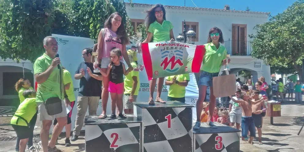 Los participantes tuvieron que realizar unos 12.500 metros aproximadamente, llenos de obstáculos, alpacas, barro y agua en los que algunos se lo tomaron en serio terminando muy rápido, entre ell@s las integrantes del AD Maratón Jerez, María José Valle que fue la vencedora Absoluta, subiéndose a lo más alto del Cajón, seguida de Toñi Boch que acabo en la tercera posición, y muy bien acompañadas por Mar Ferraz, Laura Pérez, Alberto Martino y José Frutos.
