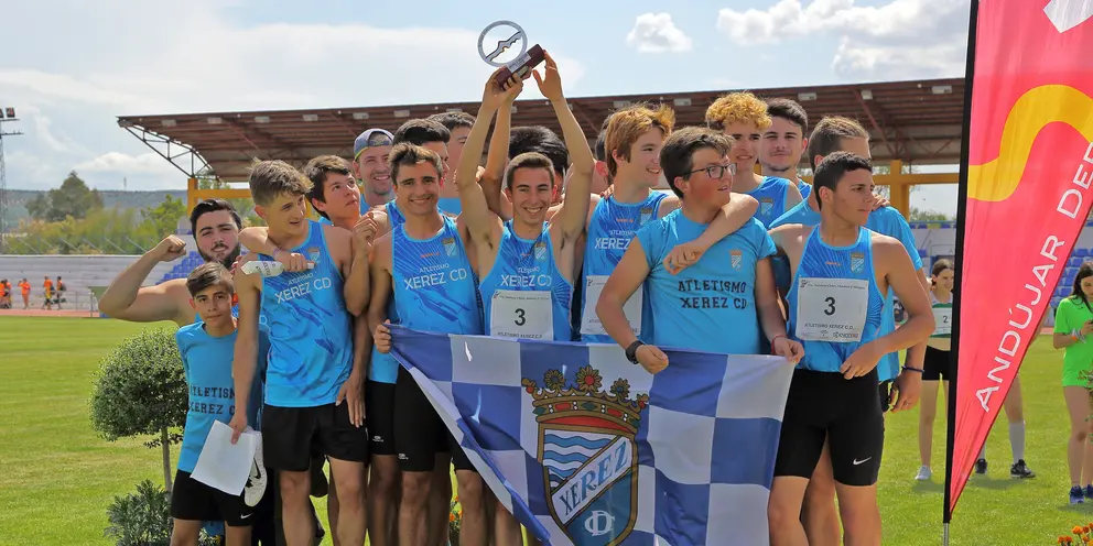 El 6 de mayo quedará grabado en la historia del escudo del Atletismo Xerez CD. Una alegría por partida doble y por la puerta grande. El equipo absoluto femenino se proclamó Campeón de Andalucía y logra el ascenso directo a Primera División. Además, el absoluto masculino se proclamó subcampeón de Andalucía y también consigue el ascenso directo a Primera División.